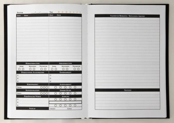 Ideal für alle, die mehr wollen als nur einen Planer: Routinen stärken, Fokus halten, Produktivität steigern und Balance finden – umgesetzt in einem stilvollen, hochwertig verarbeiteten Hardcover-Journal.